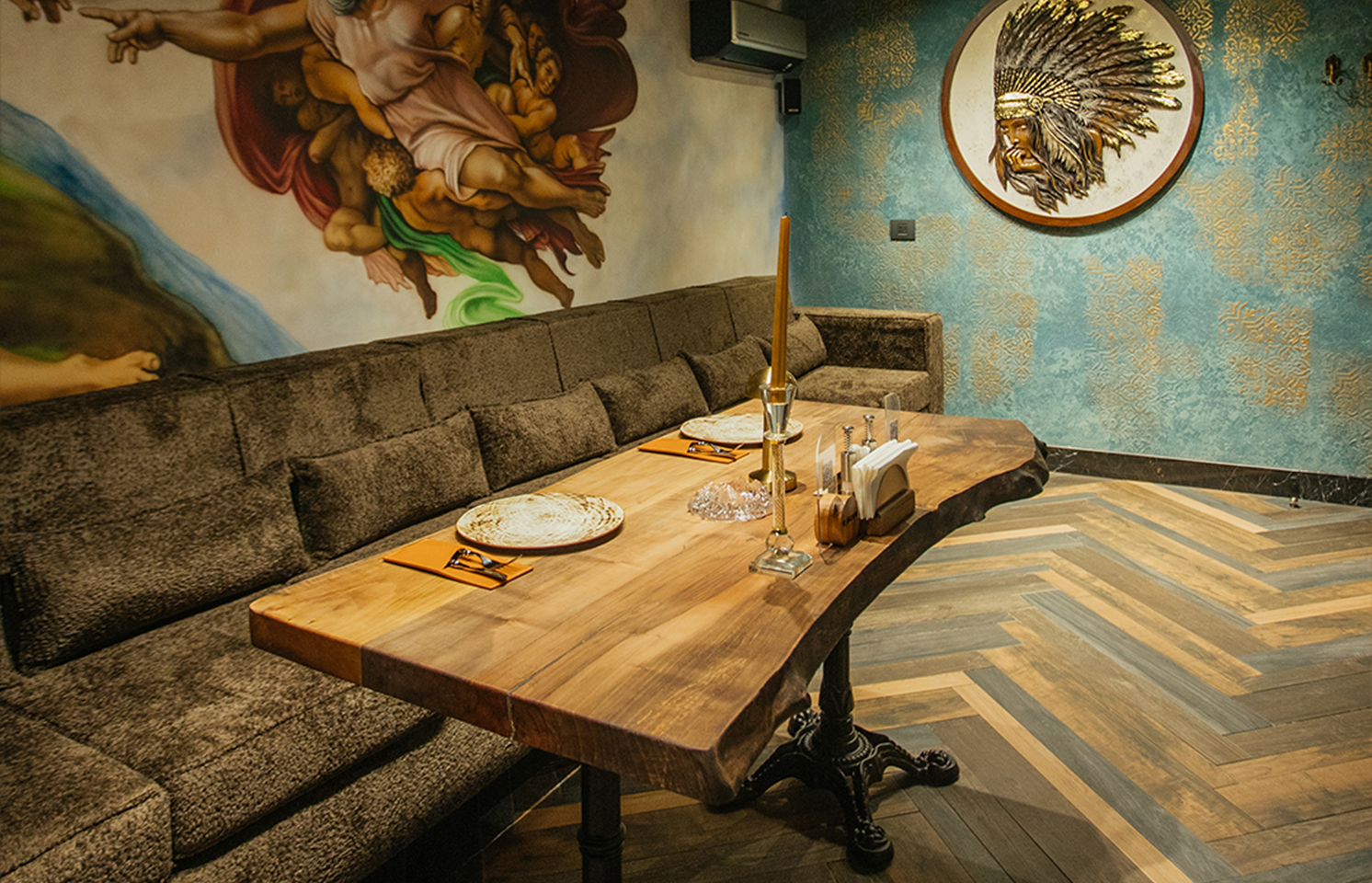 Otaq 4 Avropa klassikasından ilhamlanmış, incəsənət ruhunda hazırlanmış səmimi bir məkandır. Mikelancelo üslubunda divar rəsmləri və fakturalı yaşıl divarlar bura qalereya atmosferi bəxş edir.